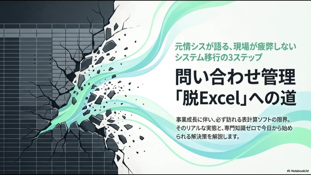 いかがでしたでしょうか。今回は、多くの企業が陥りがちな「問い合わせ管理 エクセル 限界」というテーマについて、元情シスの視点からリアルな失敗談と、その具体的な移行ステップについて解説してきました。