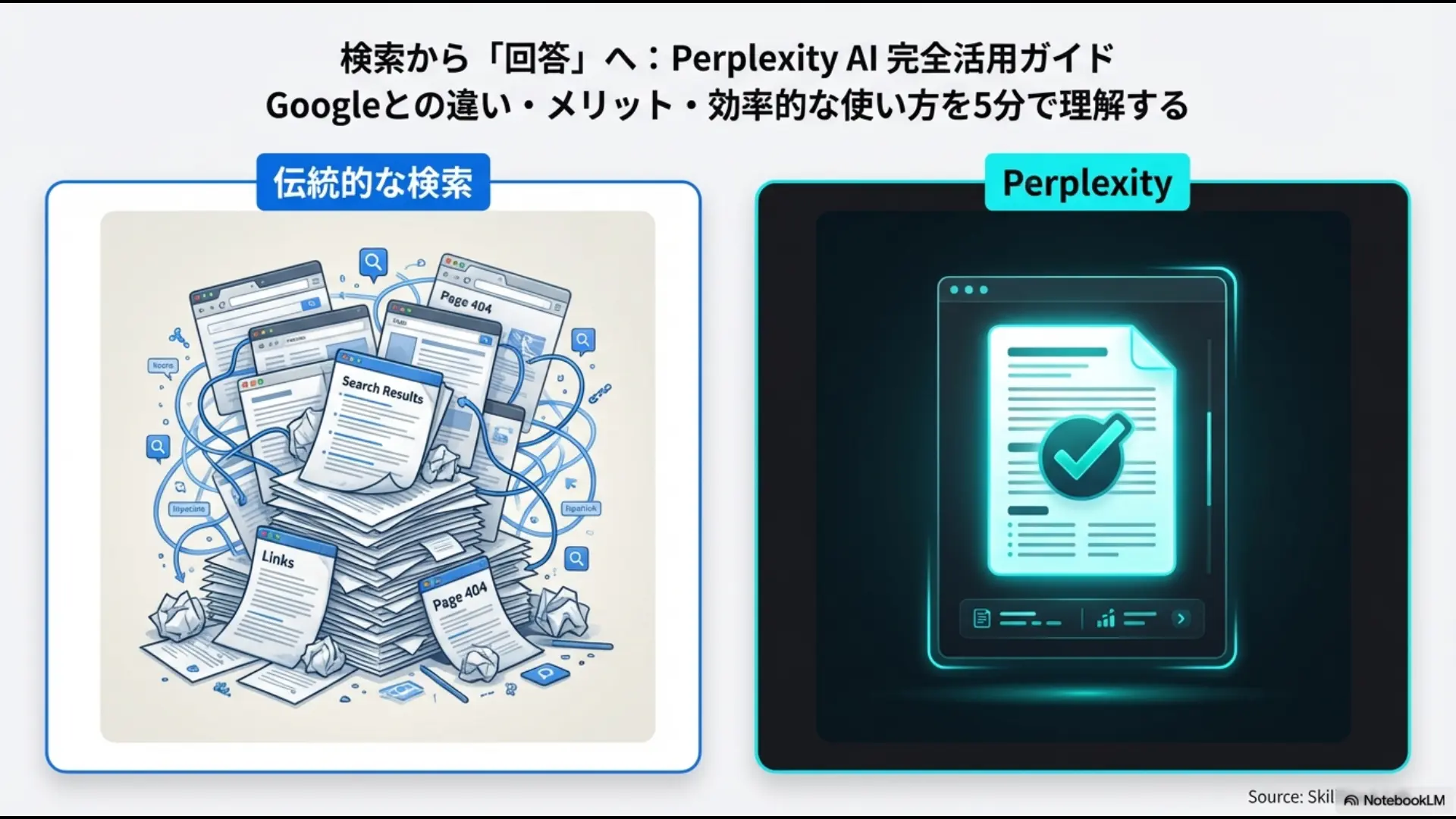 Googleは「情報の場所」を教えるツール、Perplexityは「情報の答え」を生成するツールという使い分けが基本です。